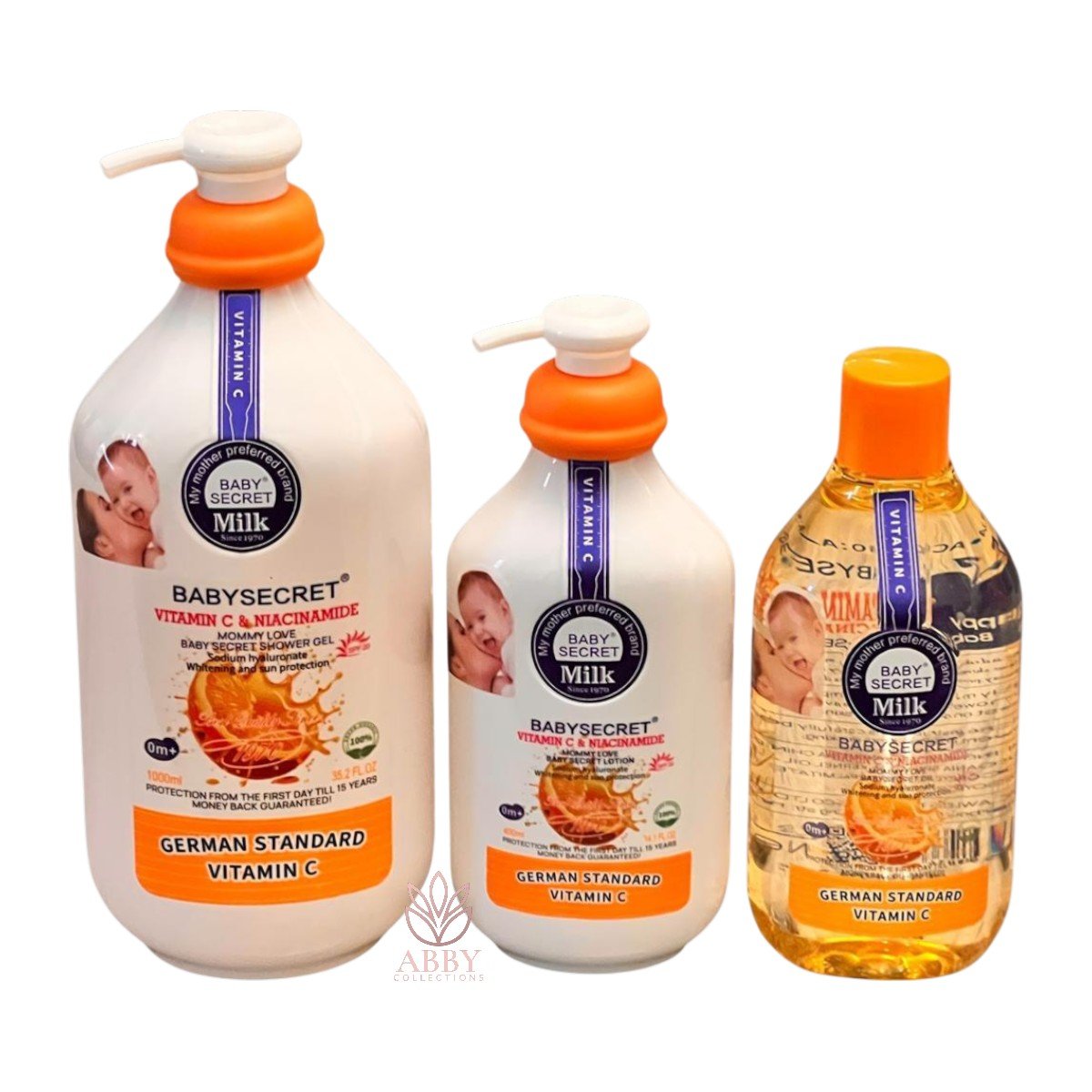 The Baby Secret Vitamin C & Niacinamide Body Care Set is designed for gentle cosmetic skincare for children and teens.