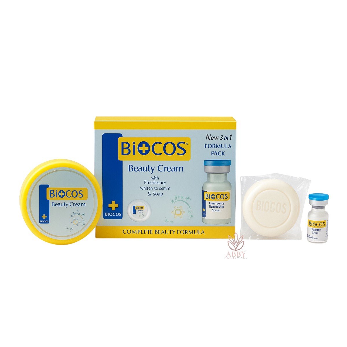 Biocos Beauty Cream with Whitening Serum Fairness & Soap set combines a powerful whitening cream, fast-action serum, and gentle brightening soap to help fade dark spots, even skin tone, and enhance your natural glow. Formulated with skin-loving brightening actives, this trio works together to nourish, smooth, and clarify the skin for a radiant, luminous, and flawless finish. Ideal for daily use to achieve a visibly brighter and more refined complexion.