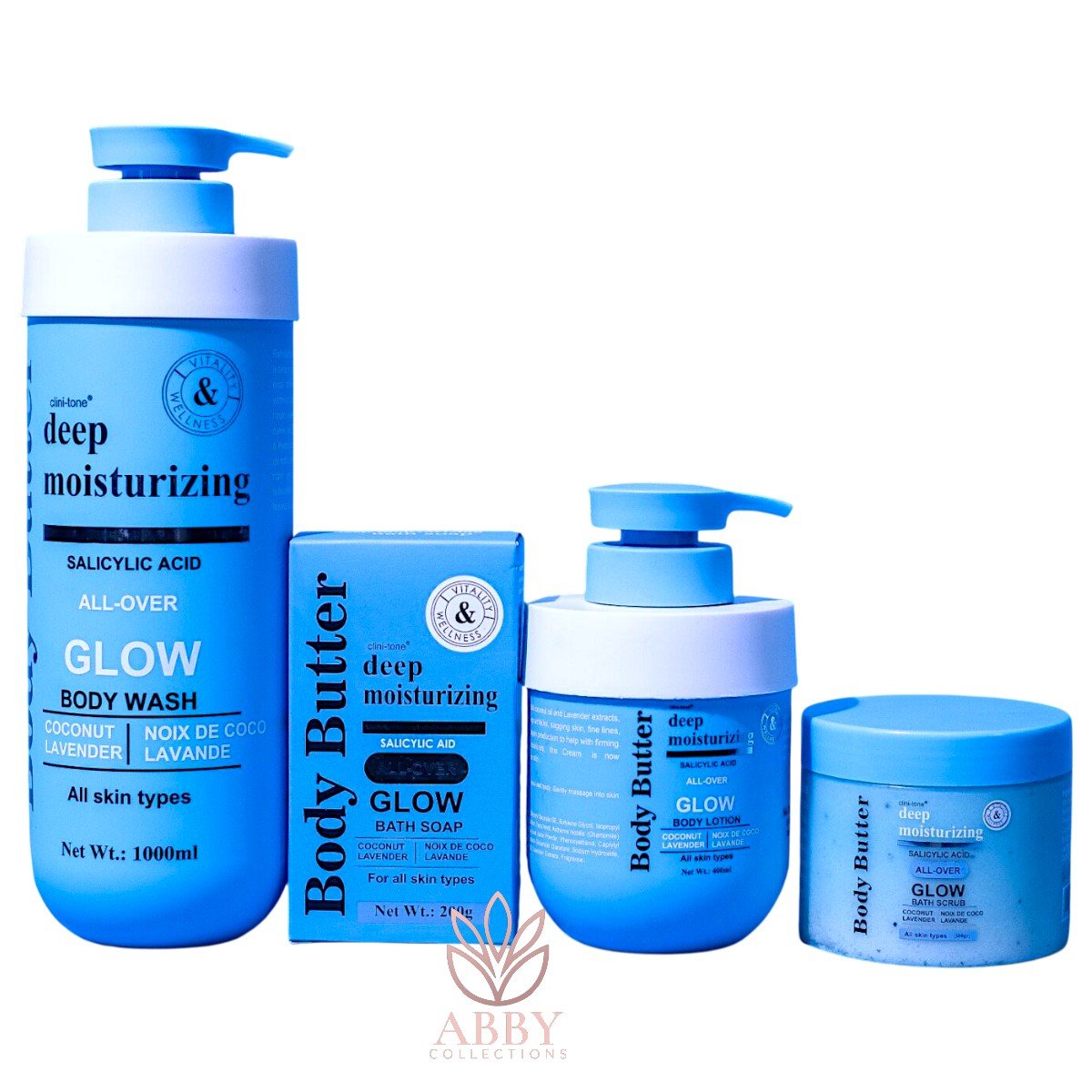 Clini-Tone Deep Moisturizing Glow Set (1000ml Wash + 400ml Lotion + 200g Soap + 300g Bath Scrub)