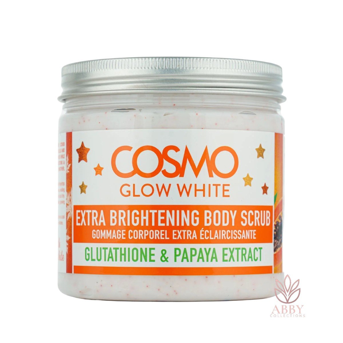 A luxurious body scrub enriched with glutathione and papaya extract to gently exfoliate and brighten the skin.