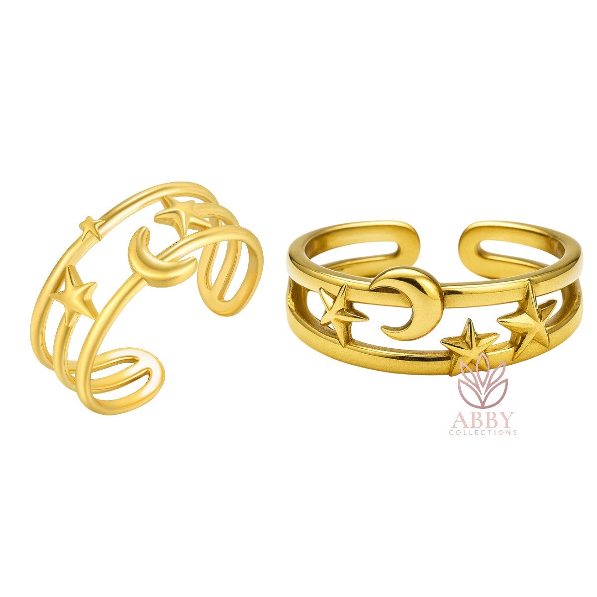 “Crescent and Star” Ring, 18K Gold Plated Steel (Adjustable)