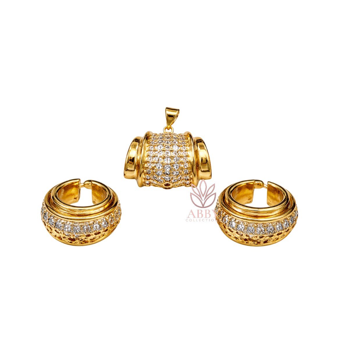 A coordinated jewellery set featuring a pendant and matching earrings.