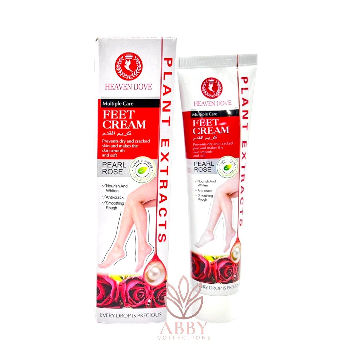 Heaven Dove Feet Cream Pearl Rose is a luxurious foot care treatment specially formulated to soften, smooth, and rejuvenate tired feet. Infused with nourishing pearl extract and soothing rose essence, it deeply hydrates dry skin, helping to restore softness and a silky-smooth feel.
