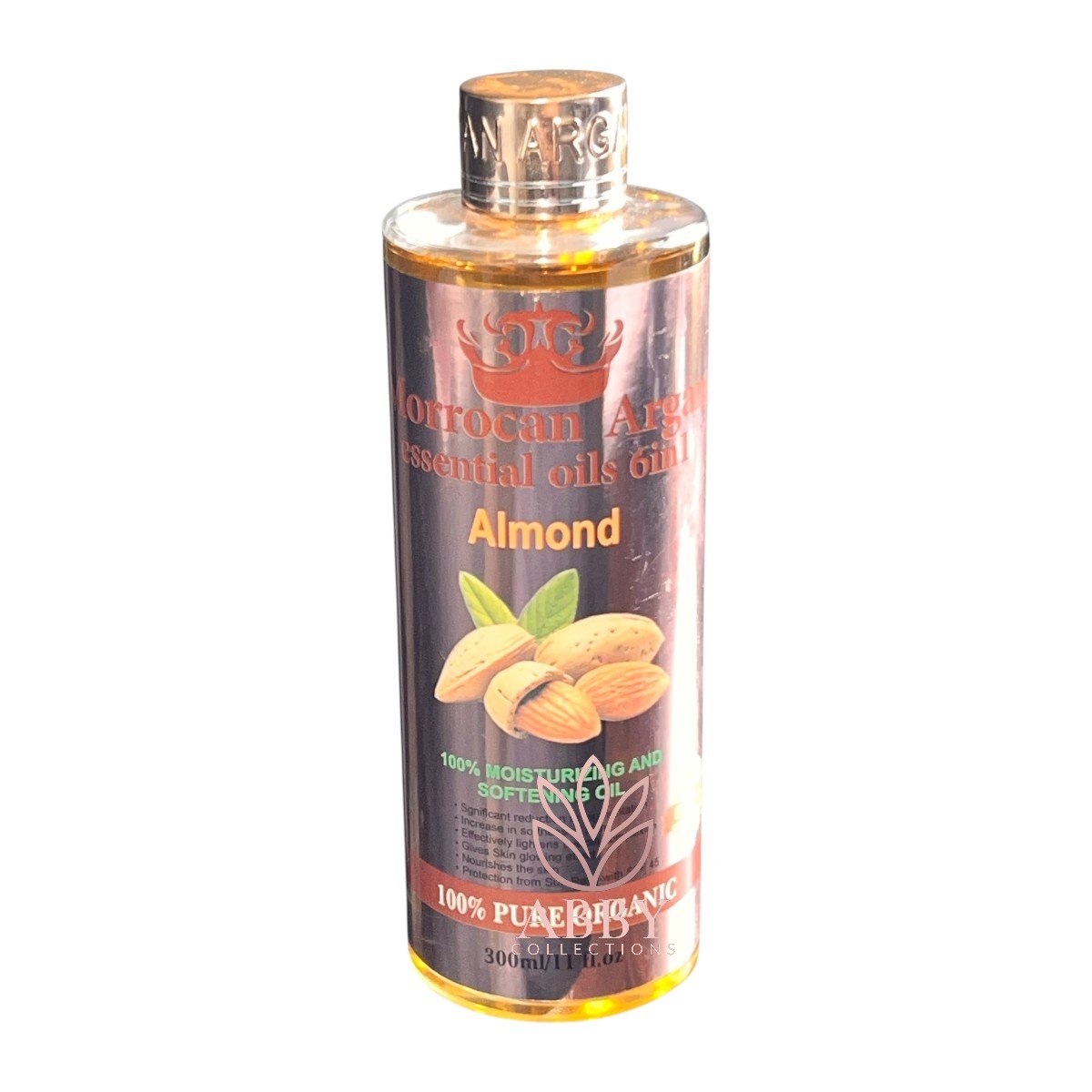 Morrocan Argan Essential Oils 6in1 – Almond is a decadent multi-tasking body and skin oil, combining the power of Moroccan argan oil with almond extract and a 6-in-1 functional formulation. Designed to deeply nourish, even tone, and leave your skin with a luminous, velvety finish.