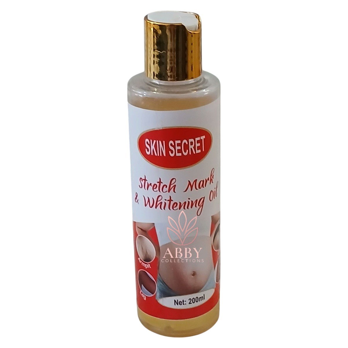 Skin Secret Stretch Mark and Whitening Oil is a nourishing treatment formulated to help reduce the appearance of stretch marks, scars, and uneven skin tone. It deeply moisturizes while promoting a brighter, smoother, and more radiant complexion with consistent use.