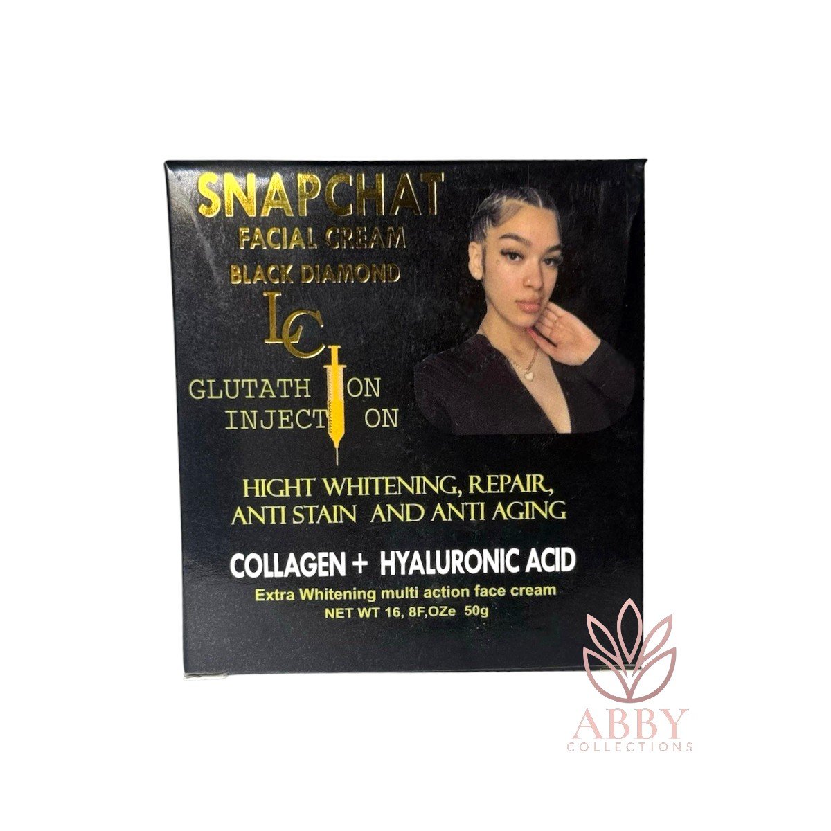 Formulated with glutathione, collagen, and hyaluronic acid.