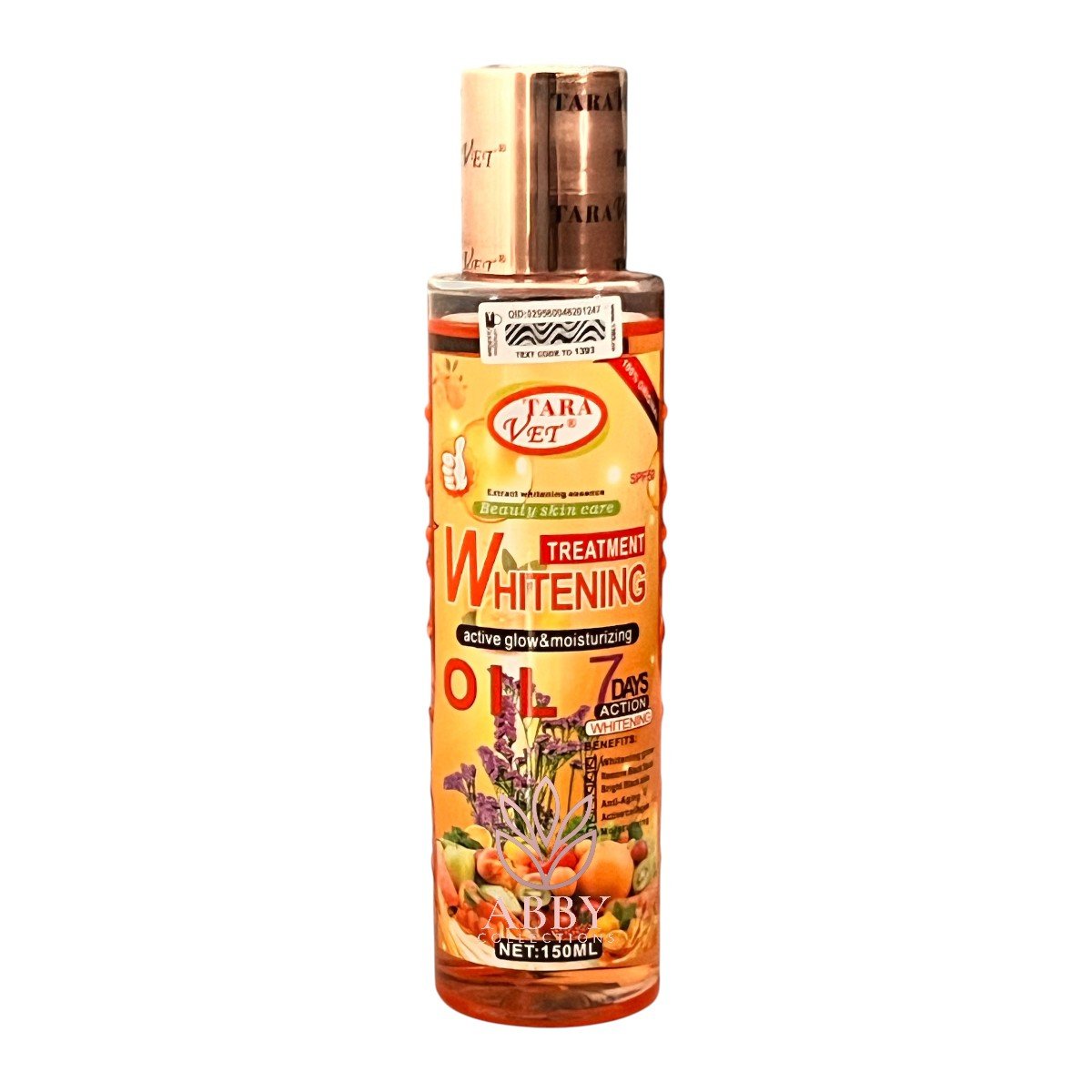 Tara Vet Beauty Whitening Active Glow & Moisturizing Oil is a brightening and hydrating body and face oil formulated to nourish, even out skin tone, and protect against sun damage. Infused with active brightening ingredients and natural oils, it helps fade dark spots, smooth the skin, and restore a radiant, youthful glow.