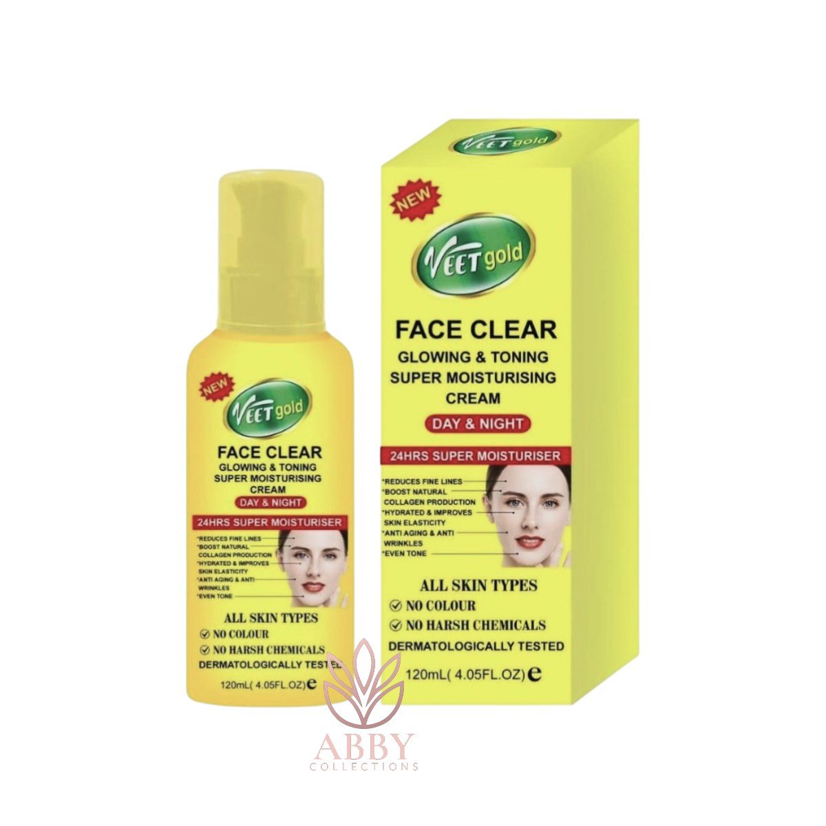 Veet Gold Face Clear Glowing and Toning Super Moisturizing Cream is a nourishing face cream formulated to brighten, hydrate, and refine the skin for a smooth, radiant glow. Enriched with skin-loving actives, it helps fade dark spots, even out skin tone, and restore moisture balance for a healthy, clear, and luminous complexion. Perfect for daily use on all skin types.